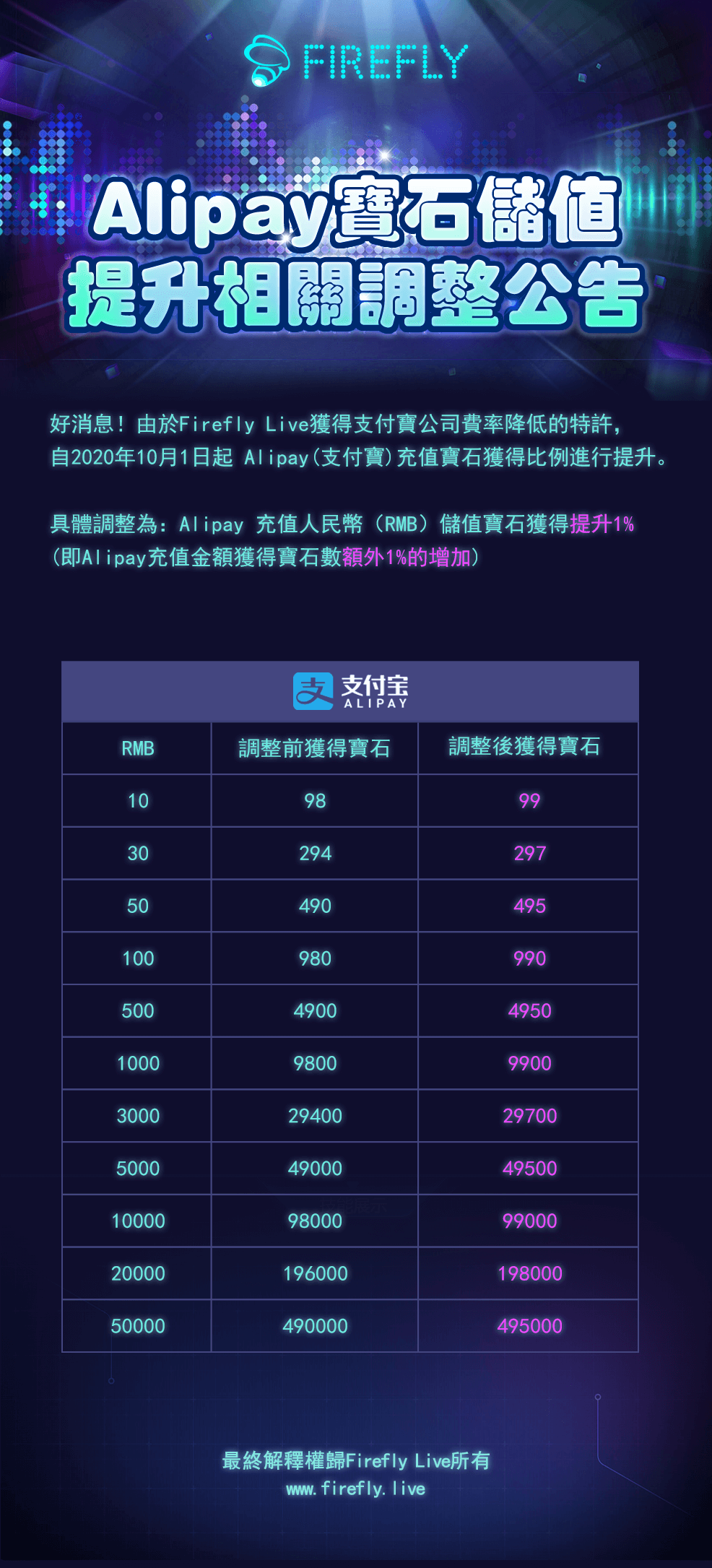 This privacy policy is applicable to how FIREFLY LIVE handles personally identifiable information that is left when you log in to the website and server, as well as other personally identifiable information shared with our business partners.